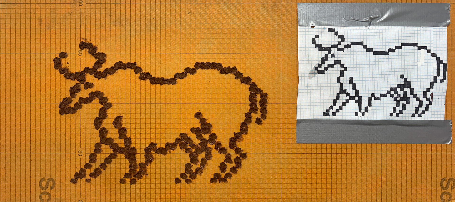 foraged ochre paint on kerdi-board, graph paper, duct tape and sharpie
