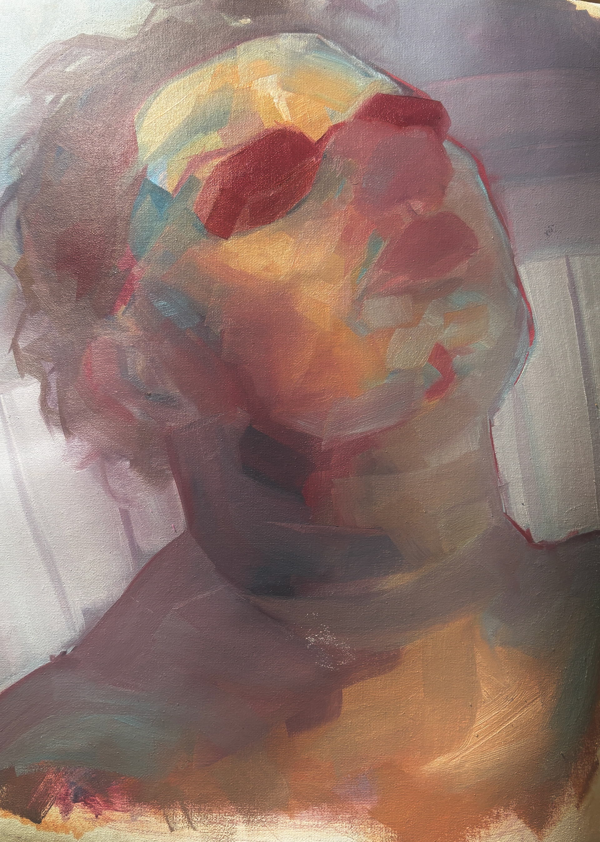 I love tanning beds. What a horrible, stupid invention, the tanning bed, that does nothing but egregiously harm your health for a minimal, vain reward. But I’m young and short-sighted, still not completely aware that I’m going to die; and I love to be tan. This painting protests the veneer of a perfectly wholesome existence and, instead, admits to and praises my indulgences.